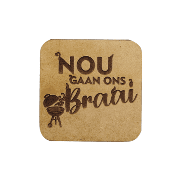 Braaing soon? Add some fun and functionality to your braai kit with our Braai Time Coasters. Each coaster is 10x10cm with a 6mm thickness, designed to keep your beverages safe and secure while adding a touch of humour to your gathering. With unique engravings on each piece, they’re the perfect conversation starter around the fire.